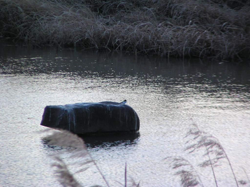 ※同じ岩を後ろから。セグロセキレイが乗っています。